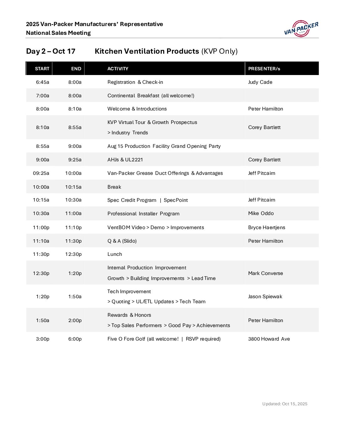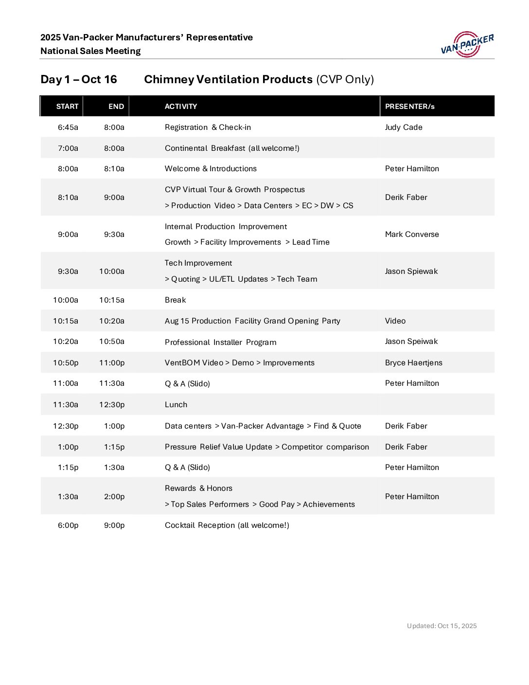 2025 Van-Packer Manufacturer’s Representative National Sales Meeting